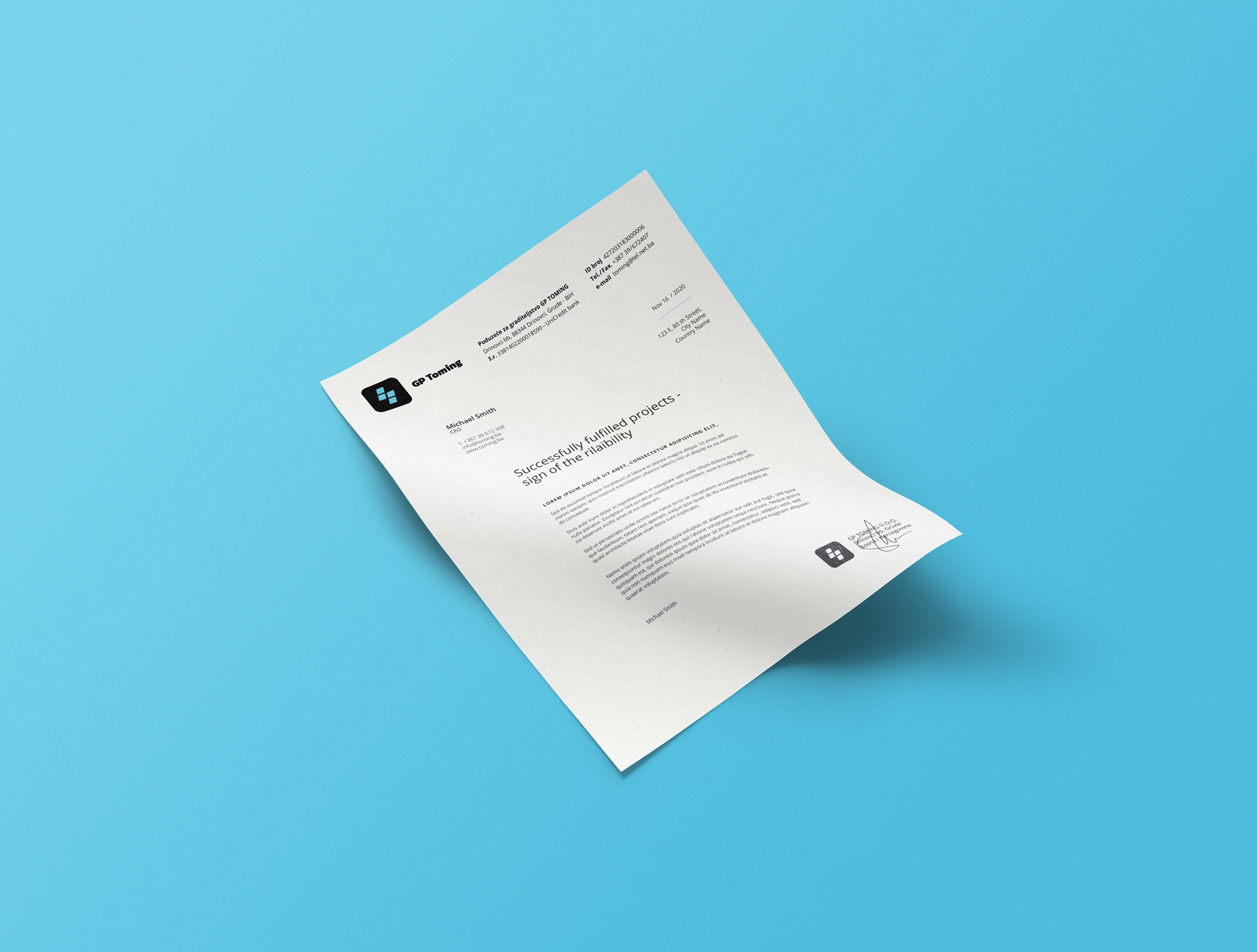 Cilj redizajna logotipa bio je prenijeti osjećaj cjelokupnog poslovanja i dizajnirati inovativan ‘vizualni potpis’. Novi GP Toming logo predstavlja sve djelatnosti koje oni, kao poduzeće, obavljaju: graditeljstvo i inženjering & proizvodnja električne energije. Reprezentativno, moderno, transparentno i lako pamtljivo finalno rješenje logotipa obuhvaća sve elemente tvrtke koji su naglašeni i stilizirani u skladu s identitetom poduzeća. Osvježenje loga vidljivo je i u korištenoj paleti boja koja naglašava modernizaciju i tehnološku naprednost tvrtke kroz snagu električne energije.